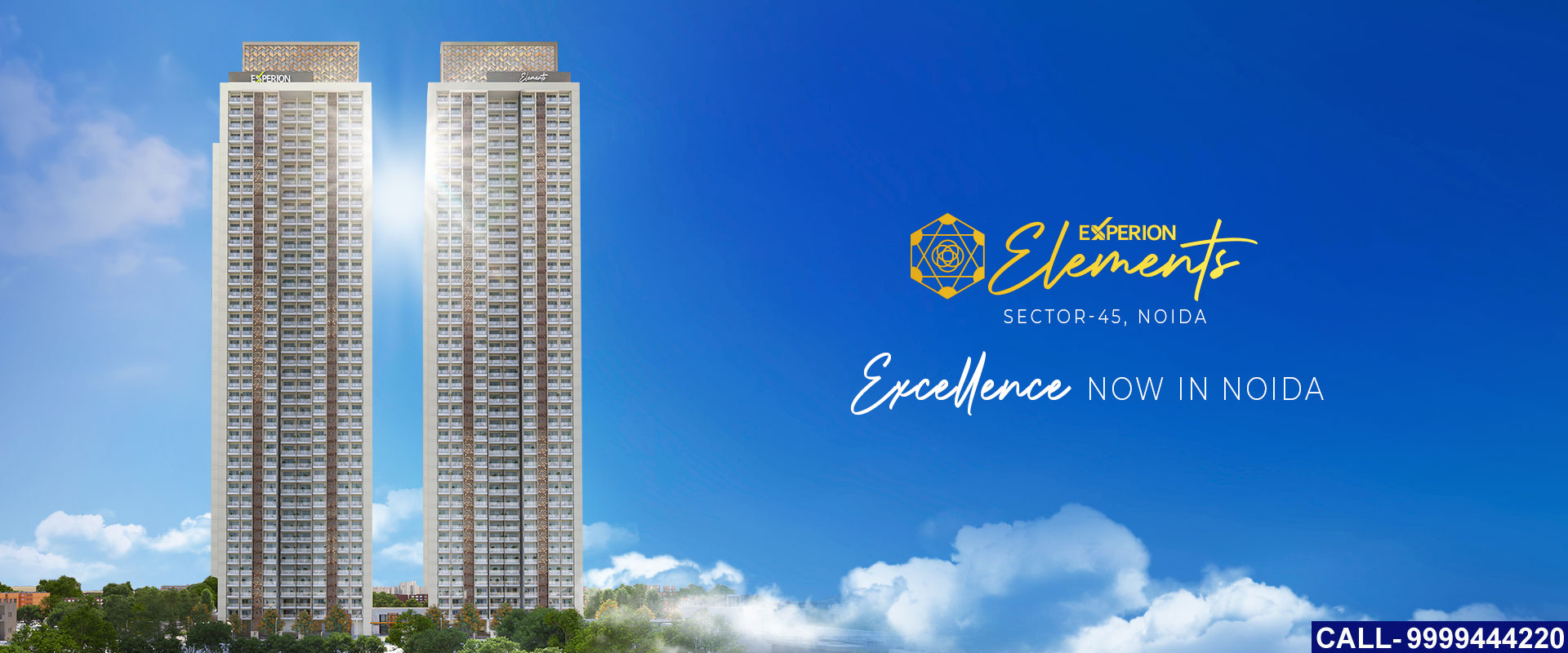 Experion Elements is set across 4.76 acres in Sector 45, Noida, offering a rare low-density luxury setting in a high-growth residential zone.